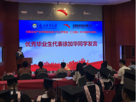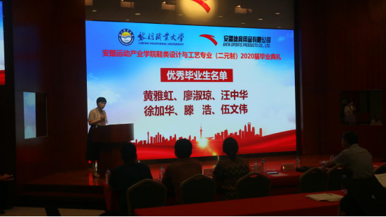 随后,鞋类设计与工艺(二元制)班主任白佳、毕业生代表徐加华分别进行了发言。